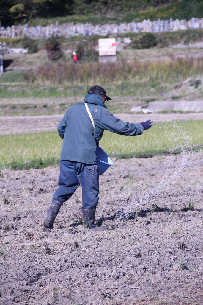 都志活性化協議会の方がボランティアで種をまいています。